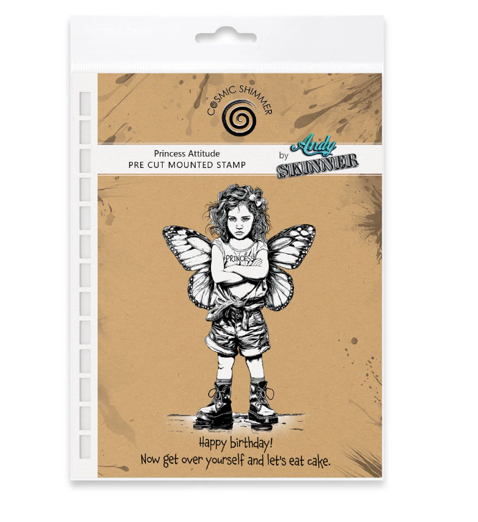Add character, attitude and artistic depth to your projects with the Princess Attitude Pre-Cut Rubber Stamp Set by renowned mixed media artist Andy Skinner for Cosmic Shimmer.